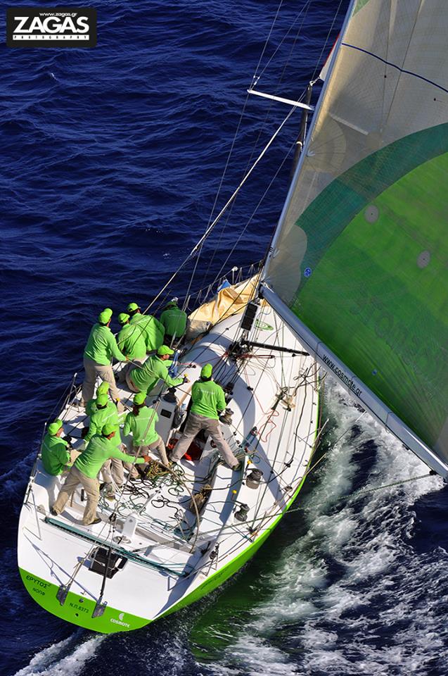 Today, the COSMOTE ERYTOS² team–having participated in most Inshore and Offshore races in the Aegean Sea and the Saronic Gulf and having achieved many triumphs in their course together– constitutes one of the leading sailing competitive teams in Greece. They are regarded as a trustworthy and capable sailing team, bestowed with the respect of the entire sailing community. The team’s success is largely due to excellent communication, team spirit and the mutual love the team members share for the sport of sailing.