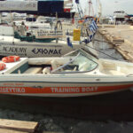Το εκπαιδευτικό σκάφος μας είναι ένα αμερικάνικο sea ray 17.5. Τo ποιο κατάλληλο σκάφος για εκπαίδευση διοτι διαθέτει γάστρα και μηχανή εσω εξω 180hp που βοηθάει στην άμεση κατανόηση των ελιγμών (χειρισμών) ενός ταχύπλοου σκάφους, εξοπλισμένο με όλα τα απαραίτητα εφόδια για ασφάλεια και επιδείξη .